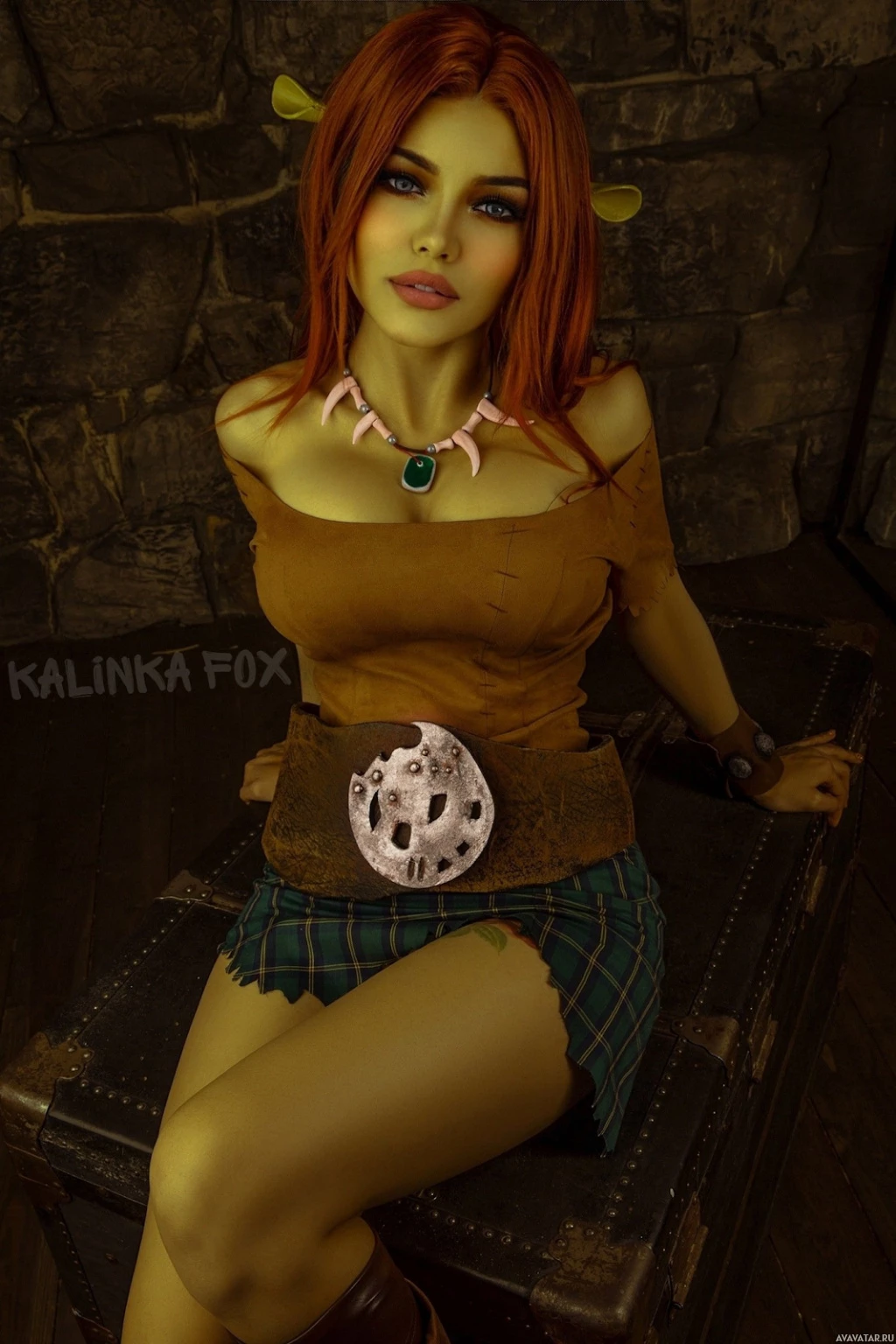 The image shows a person dressed in cosplay as Princess Fiona from