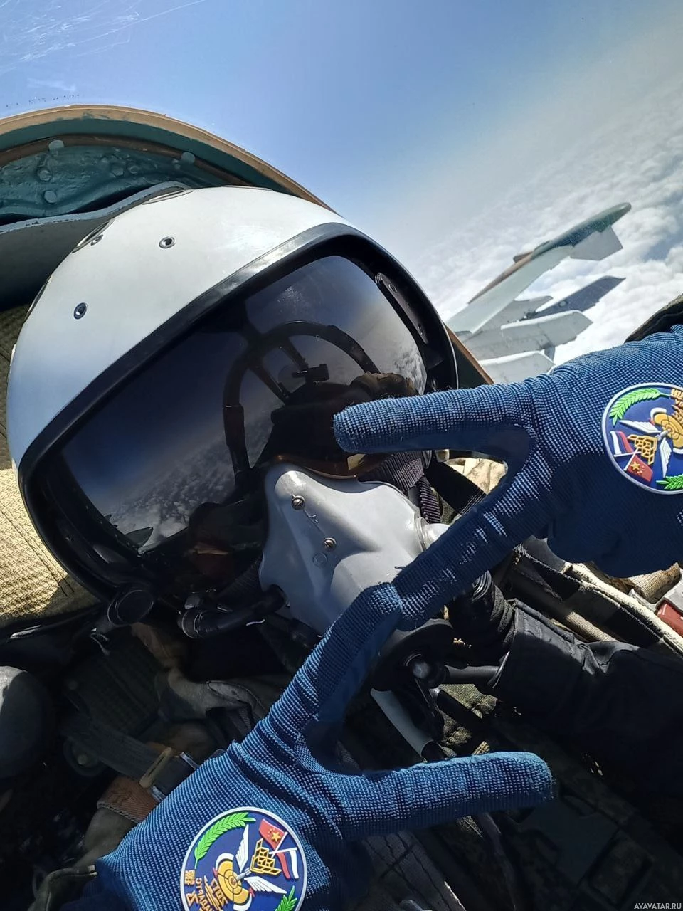 gloves on the hands are also part of the flight suit and have insignias or emblems on them.