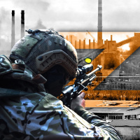 the Russian army, as indicated by the uniform and insignia. The soldier is depicted from behind and appears to be holding a weapon with a scope or sighting system on top, which suggests they might be engaging in combat or