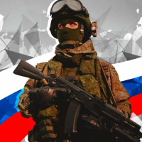 military attire, equipped with what appears to be Russian army gear. The soldier is standing upright and looking directly at the camera. He are wearing a helmet,