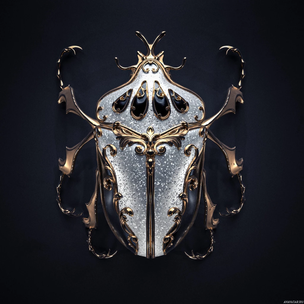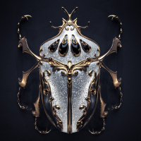 The image shows an artistic representation of a beetle. It's designed in an ornate and intricate style, with elements that could be interpreted as inspired by Gothic or Baroque art. The beetle is central to the composition, surrounded by