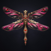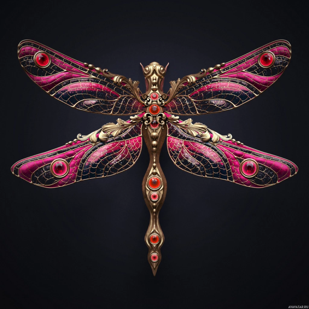 The image depicts a meticulously crafted dragonfly with