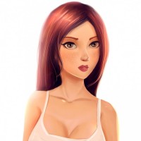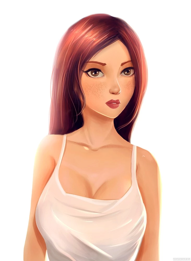 red hair. She appears to be wearing a white