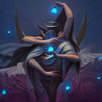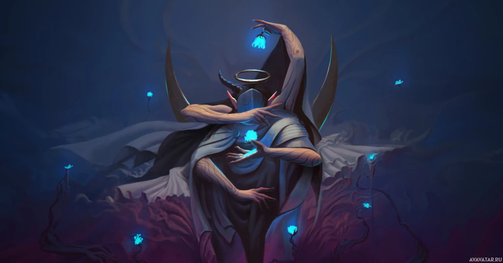 humanoid figures, one with what appears to be bird-like wings and the other with what could be interpreted as fish-like scales or skin. Both figures have an ethereal or supernatural appearance, suggesting they might be