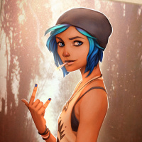 The image depicts an animated character resembling Chloe Price from
