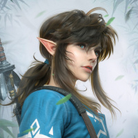 The image features a character that appears to be from the Legend of Zelda series, specifically resembling Link. This character is known as an elf in the fantasy genre, often associated with magical and mystical elements within the game's world.