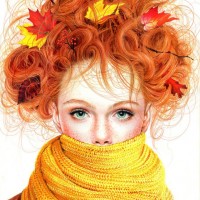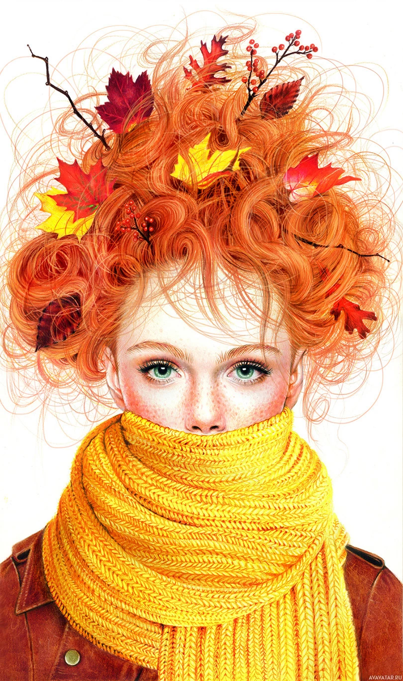 шарфы | Скачать аватары с шарфом | Scarf | Рыжеволосая девушка с опадающими листьями