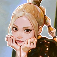 a young woman with light blonde hair. She is wearing what appears to be an outfit with