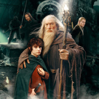Lord of the Rings," featuring characters from Middle-earth. Specifically, it shows Gandalf, played by actor Ian McKellen, and