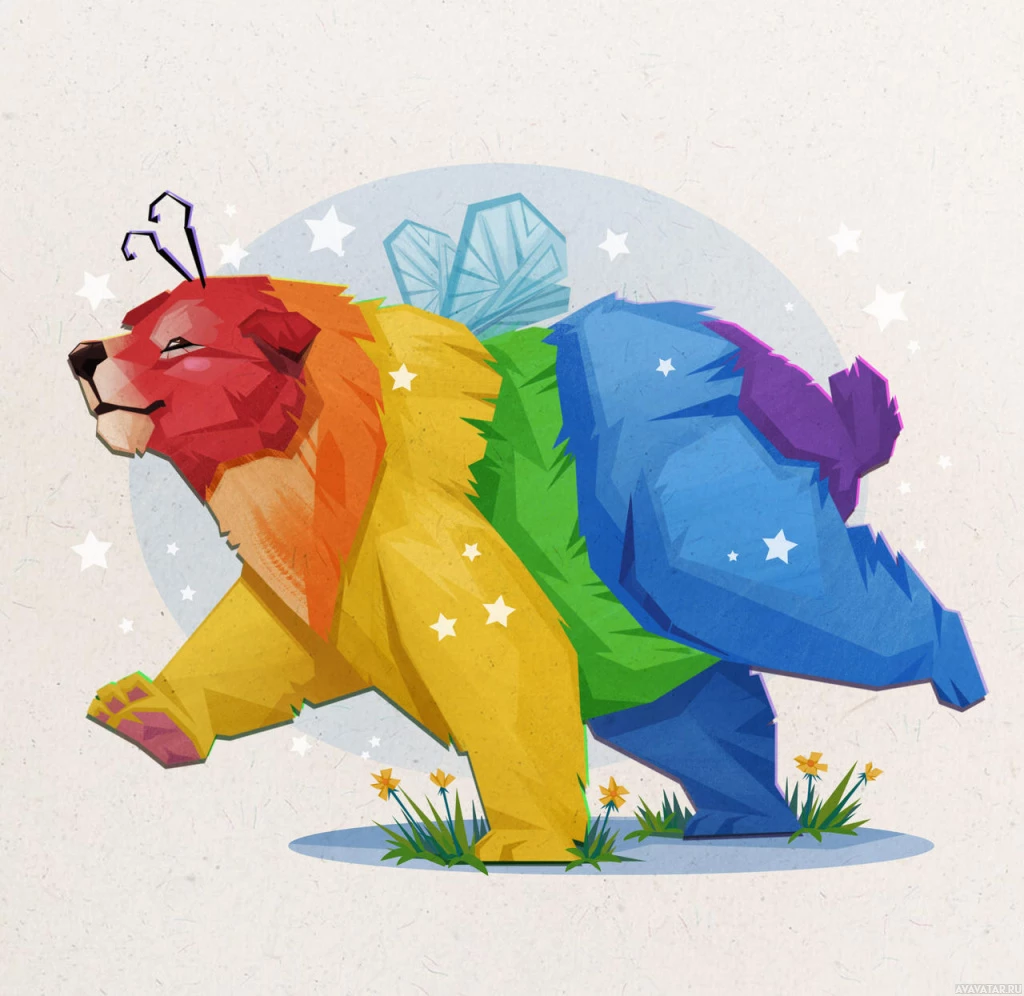 The image depicts a colorful, cartoon-style illustration of a bear. This bear has been stylized with