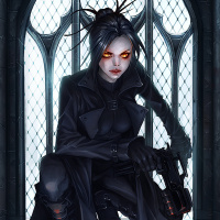 an intense vibe. The setting looks like a medieval or gothic-style environment, with a stained