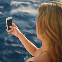 The image shows a person, likely a girl, holding up a phone to capture a photo. This suggests that she is taking a selfie or capturing
