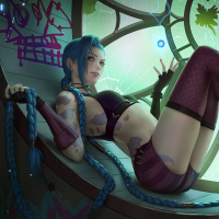 science fiction with urban artistry. The character's design seems to be inspired by the character Jinx from "