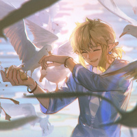 the pointed ears. The character is smiling and has closed eyes, suggesting they are in