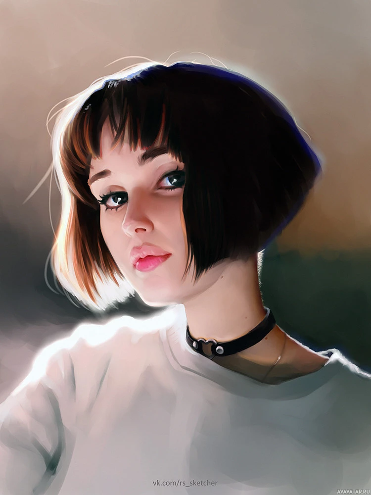 a white top and has a neutral expression on her face. Her gaze seems to be directed towards the viewer, giving the impression that she might be aware of being looked at or portrayed in this artwork. The style of the painting suggests a contemporary approach with attention to detail in facial features and