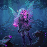 white hair who appears to be a fairy. The setting looks like