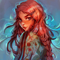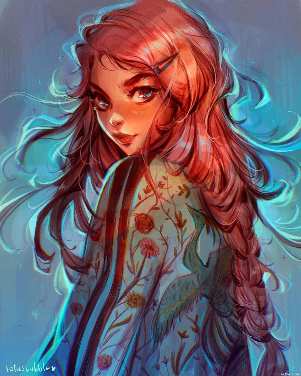 blue eyes and is wearing what appears to be traditional Japanese clothing, possibly an Aikatsu outfit, which suggests she could be a character from the Aikatsu! franchise or inspired by it. Her expression is serene as she gazes off to the side. The background is dark and moody, with abstract elements that give