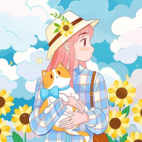 a clear sky with fluffy clouds. The scene has a whimsical and pastel-colored aesthetic, suggesting it might be from a children's book or
