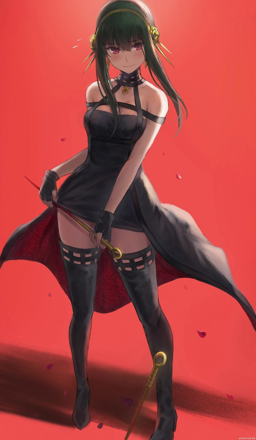 a red background, which might imply a romantic or dramatic setting. The character's pose and expression could suggest that she is part of an action-oriented series or film.
