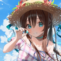 an animated character of a young girl sitting on the beach. She is wearing a colorful outfit that includes