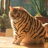 indoor plants visible behind the cat, suggesting an environment that could be a home or a pet-friendly space.