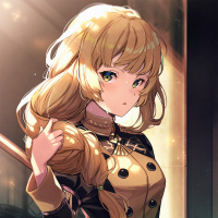 workshop setting. The character's expression seems focused or determined, which aligns with her military-style attire.