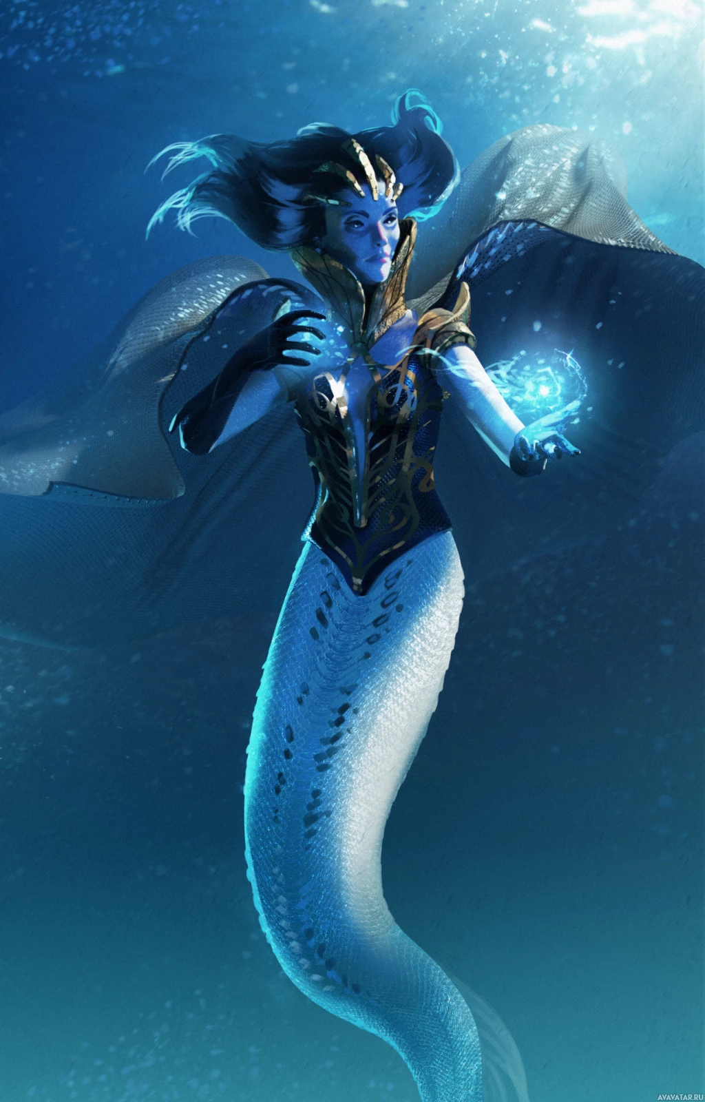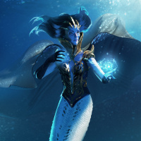 mermaid character. The character has long, flowing hair and is wearing a cloak or tail that resembles the tail of a fish or merman, suggesting she might be