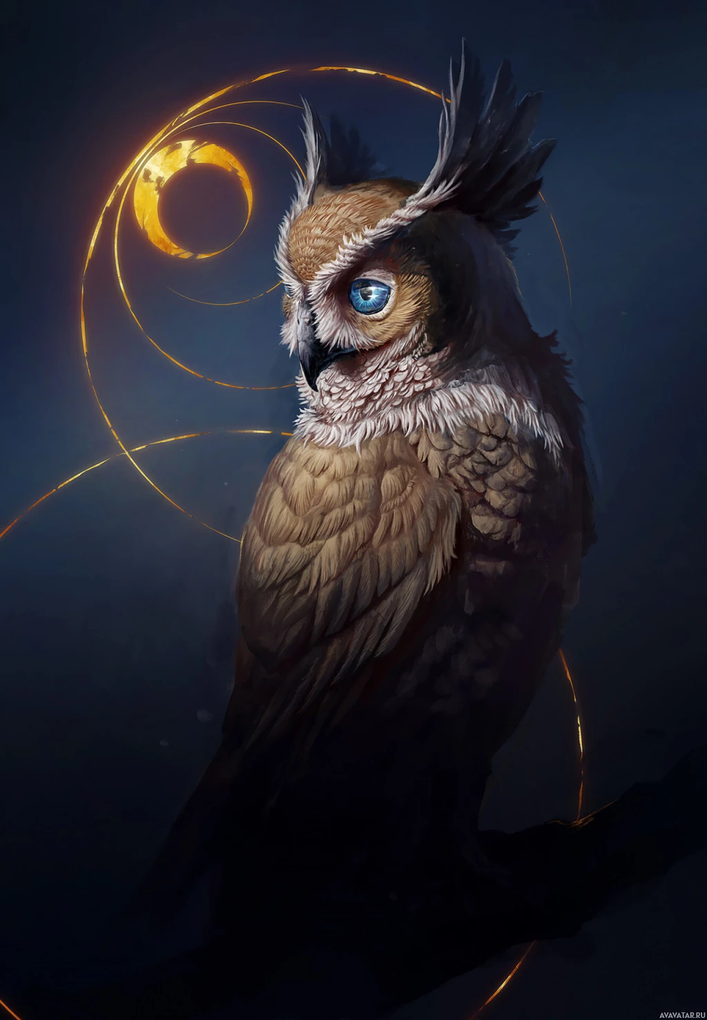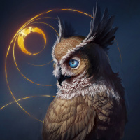 golden hues, possibly representing light or magical elements, which adds an artistic and mystical quality to the image. The overall composition suggests a theme of mysticism or fantasy associated with the owl.