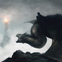 a rocky outcropping with mist or smoke in the background, which adds to the ominous atmosphere typical of such scenes from the movies or the books by J.R.R. Tolkien. The creature's expression seems contemplative or possibly foreboding, fitting the role of these characters as