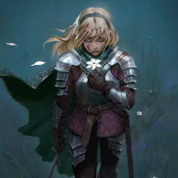 blonde hair and is wearing a medieval-style armor that appears to be made of steel or metal plates. Her expression seems contemplative or perhaps sad as she stands in what looks like