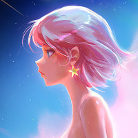 an animated character with pink hair. She is depicted with a whimsical appearance, wearing what appears to be a dress that could suggest a fantasy or magical theme. The background suggests a starry