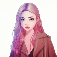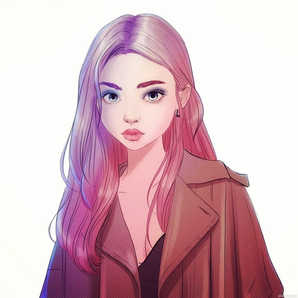 На картинке изображен иллюстрированный персонаж, девушка с розовыми волосами. Она одета во что-то похожее на куртку или пальто и имеет простой, стилизованный внешний вид, типичный для цифровых произведений искусства.