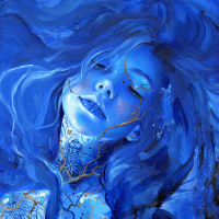 shades of blue, which contributes to the overall ethereal or dream-like quality of the artwork. The