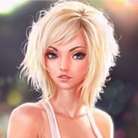 female character with blonde hair and blue eyes. She is wearing