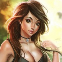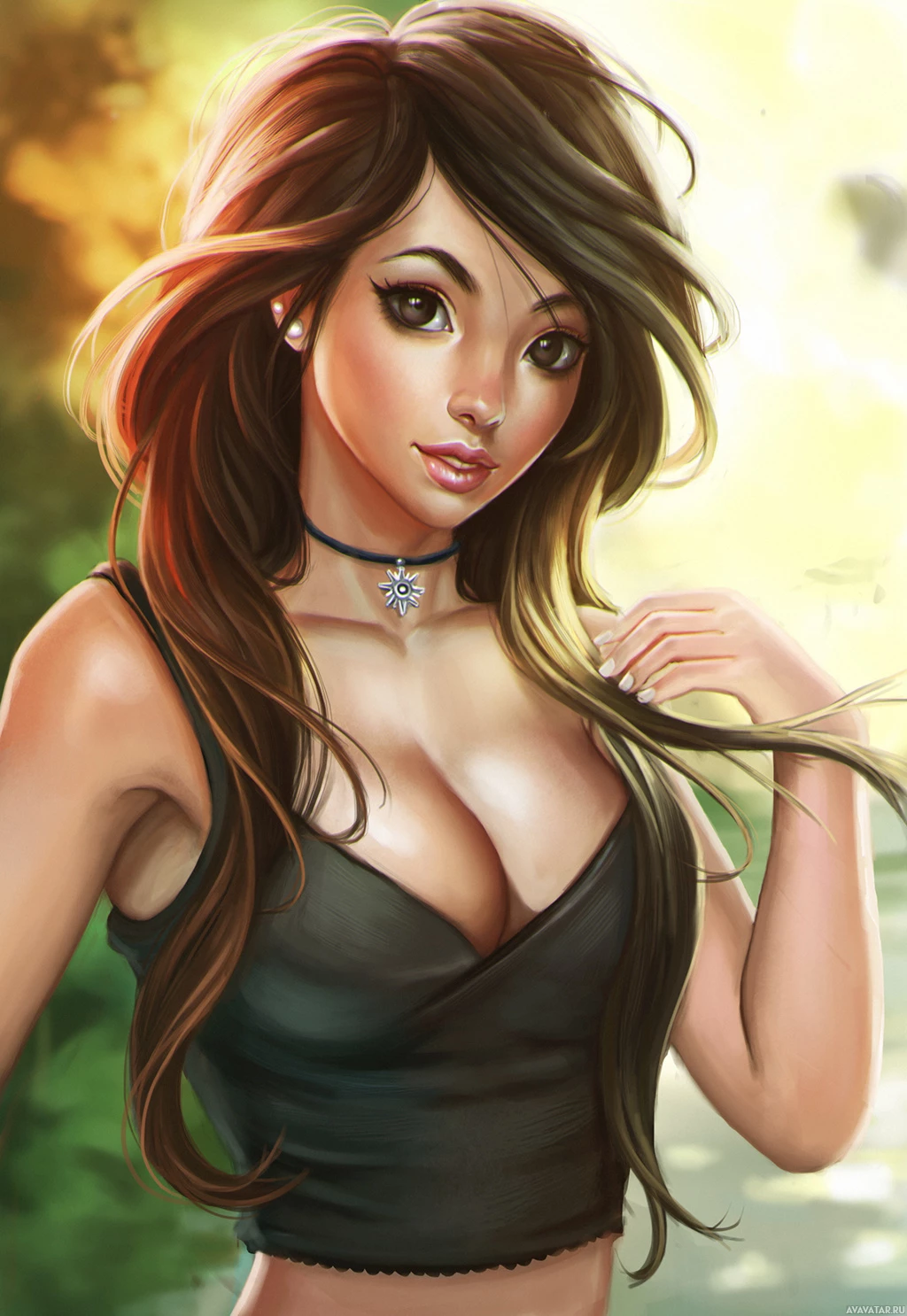 a sleeveless top or blouse, which reveals part of her midriff. The background suggests