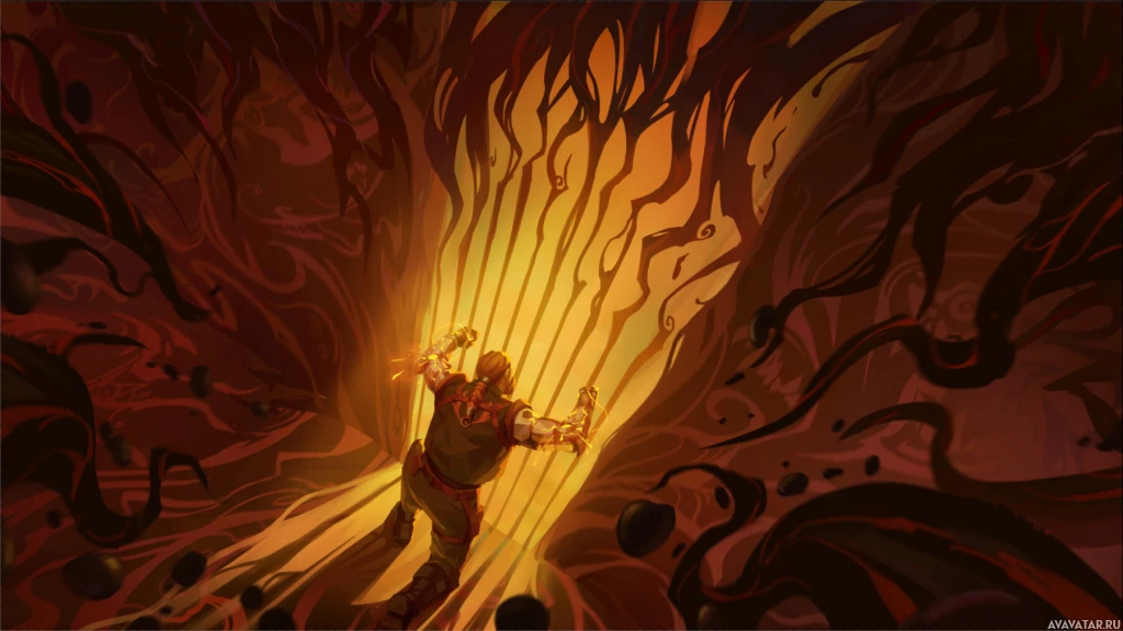 use of color, lighting, and composition creates a dramatic and intense atmosphere.