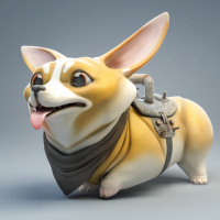 a friendly expression, with its tongue sticking out slightly to the left. The dog is wearing what appears to be a small saddle or harness on its back, suggesting it might be portrayed as a pet for adventure or travel.
