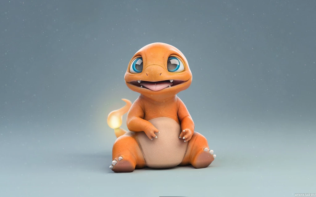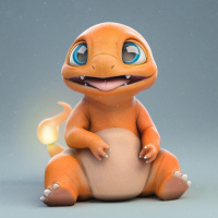 animated character that appears to be Charmander from the Pokémon franchise. The character is depicted in a baby form, sitting and looking upward with
