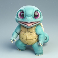 The image shows a 3D model or figure of Squirtle, which is a popular Pokémon character. Squirtle is depicted in its iconic blue form with a yellow shell on its back and a cheerful expression.