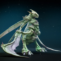 large wings and claws. The creature is wearing armor or a suit, which adds an element of fantasy to its design. The overall aesthetic suggests it could be from a game, animation, or artwork inspired by the Pokémon franchise, where players collect, train, and battle creatures with