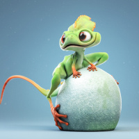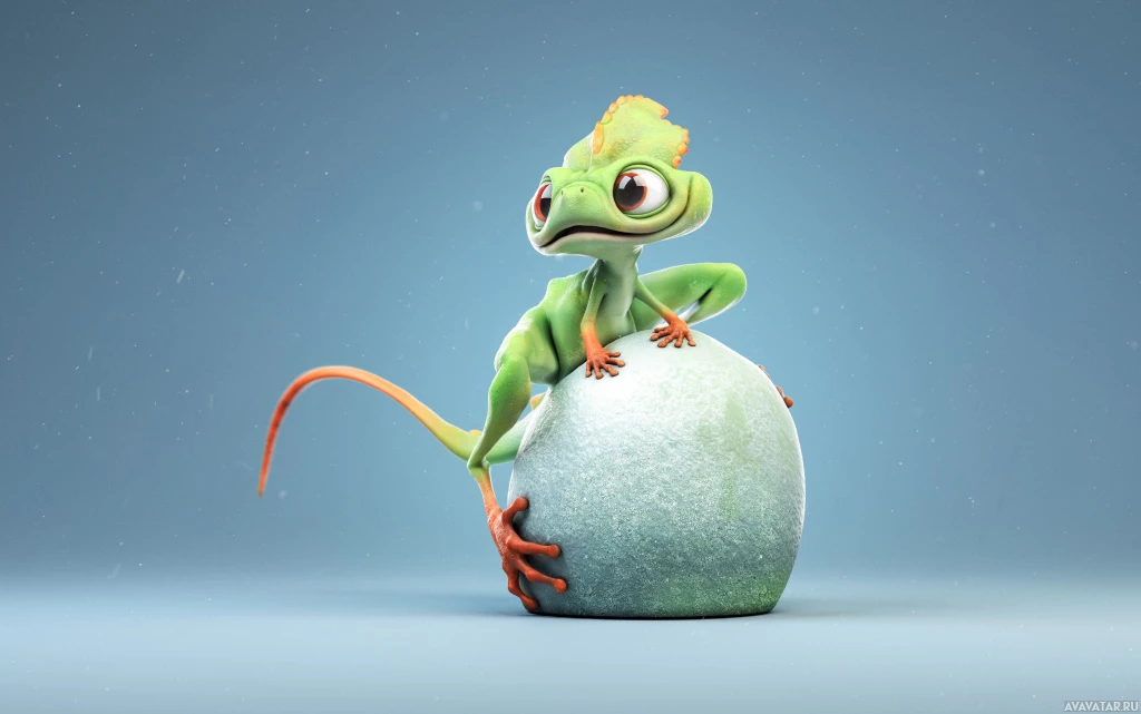 lizard character, which appears to be styled in a whimsical and fantastical manner. It's sitting on top of what looks like an egg with