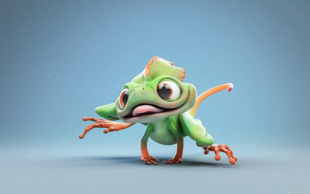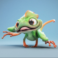 animated character that resembles an amphibian or a frog. It has large,