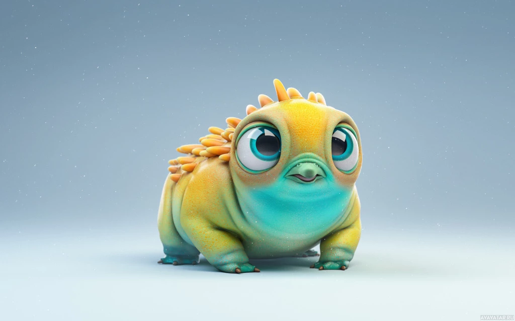 known species. Its bright colors and cute face give it an animated or cartoonish quality, suggesting that this could be from