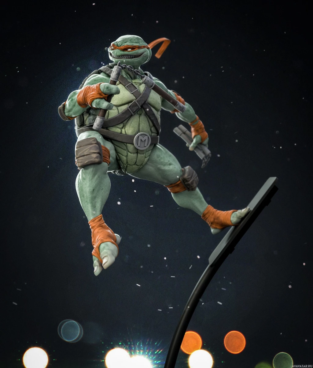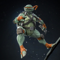 Mutant Ninja Turtles franchise, known as Michelangelo. He is depicted in his