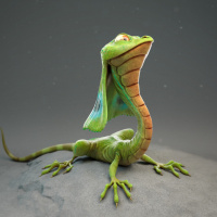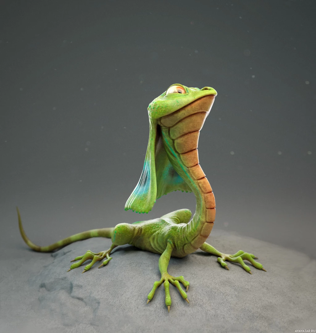 night sky in the background. The lizard has vibrant green and blue scales, which are indicative of some species found in nature. The overall composition suggests this might be an artistic rendering or a digital illustration rather than a photograph of