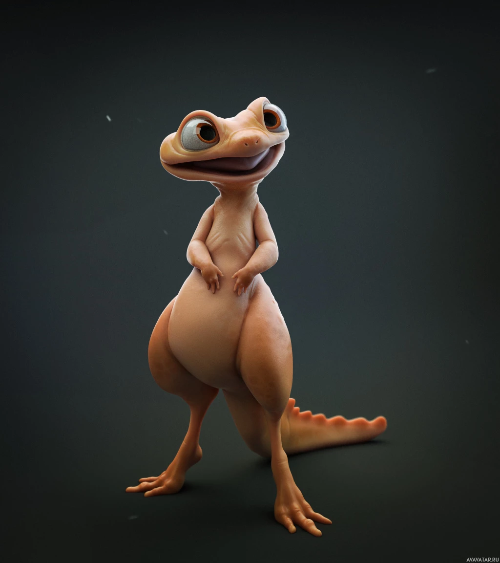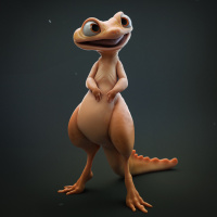 animated character that appears to be a blend between a human and a dinosaur. It's standing upright on two legs, which is characteristic of many anthropomorphic portrayals in
