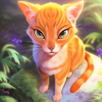 forest setting. The cat has
