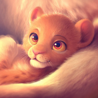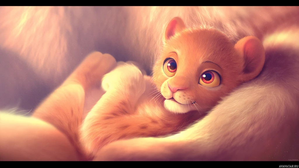 lion cub. It is depicted in a very tender and innocent manner, often associated with characters from the "