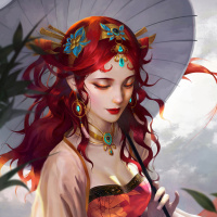 a decorative umbrella that adds to the mystical or fantasy-like atmosphere of the image. Her attire appears to be inspired by traditional East Asian clothing, with a flowing robe and embellishments suggesting