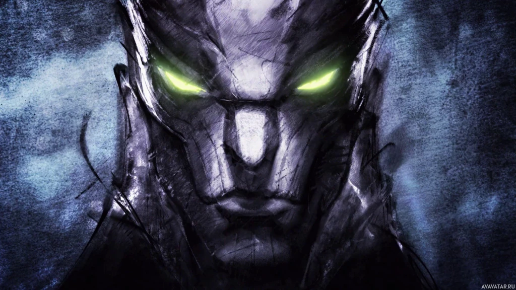 the video game Dota 2. This character is known as Terrorblade, and he is depicted with a menacing appearance, wearing what appears to be
